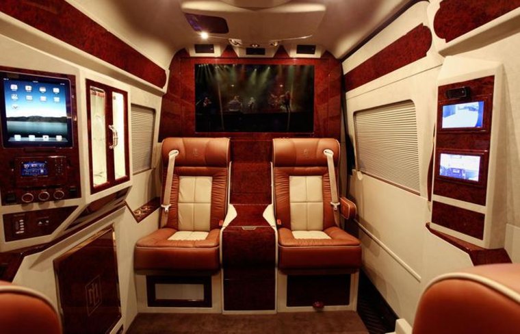 W Mercedesie Sprinterze od Lexani Motorcars aż roi się od różnego rodzaju gadżetów. Pasażerowie mają do dyspozycji m.in. 46-calowy LED-owy telewizor, system audio marki Alpine oraz Play Station 3. Nie mogło również zabraknąć wygodnych, luksusowych foteli, łóżka do spania i barku, z którego właściciel może skorzystać po ciężkim dniu.
